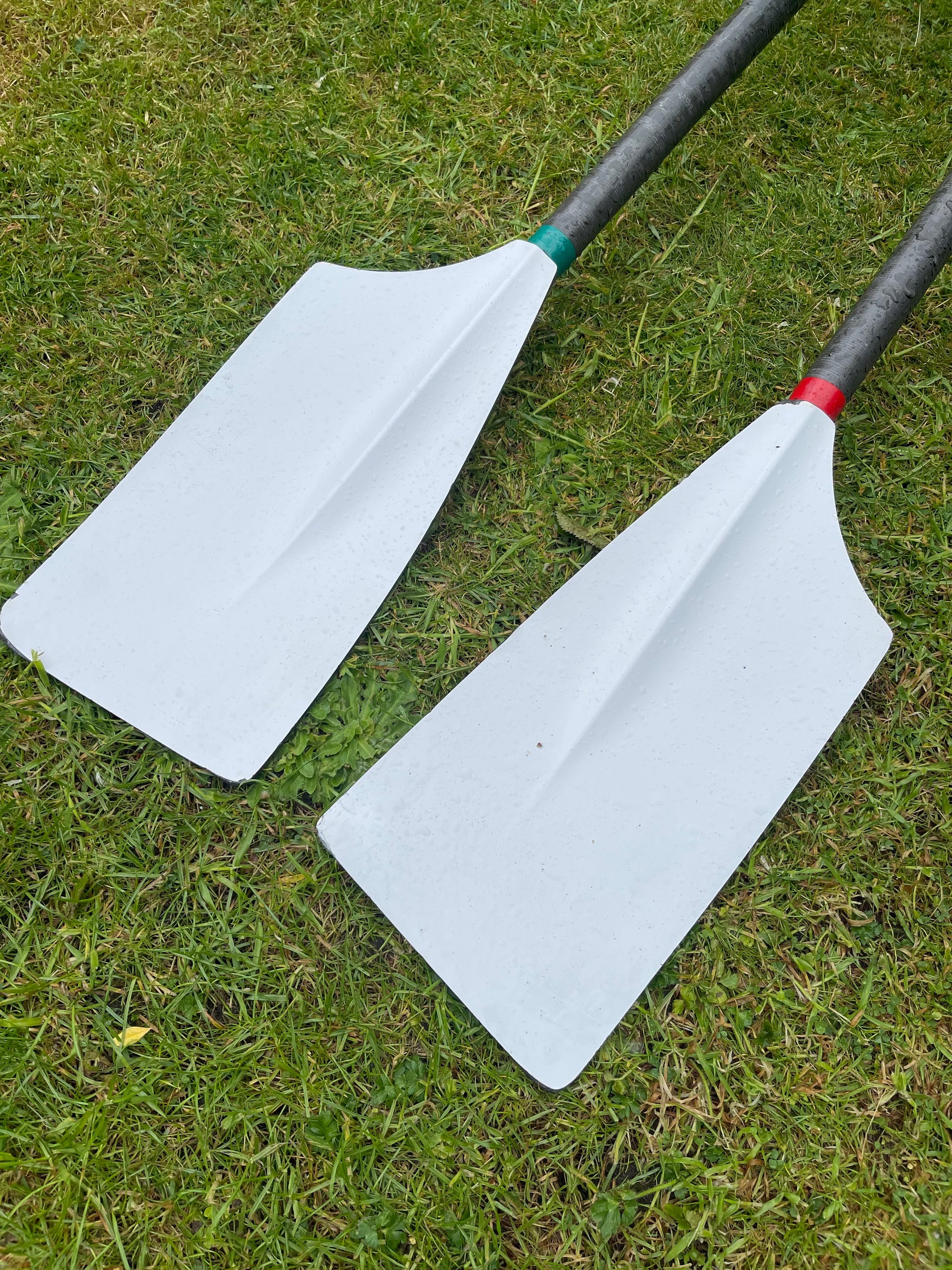 Sculling Blades are available to purchase as priced, and normally primed either grey or white. All sculls are maintained to a high standard unless specifically stated and photos here reflect the set advertised unless marked out of stock.